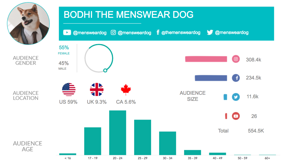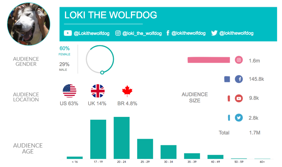 Animal is an easy and cute way to grab an audience’s attention and sure to brighten people’s day. With our furry friends’ popularity on the rise and using Neoreach, we have identified the top dogs on social media using overall performance data and audience demographics.